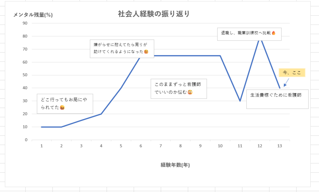 働き方を見直すきっかけになった、心理的余力の推移を簡単に可視化しています。